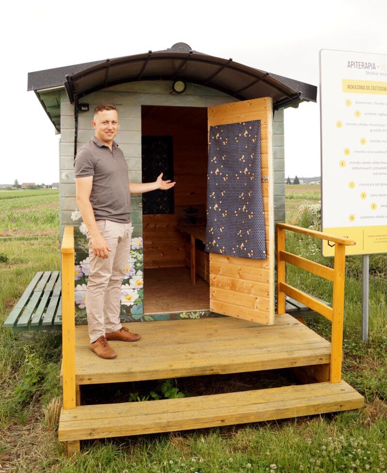 Apidomek to miejsce, gdzie natura spotyka się z terapią – drewniana chatka, która została stworzona, by przenieść Cię w świat ulowego powietrza i pszczelej energii. Wnętrze apidomku nasycone jest naturalnymi olejkami eterycznymi, które unoszą się w powietrzu niczym delikatna mgiełka, przynosząc ukojenie dla dróg oddechowych oraz całego organizmu. W tym magicznym zakątku każdy oddech staje się głębokim kontaktem z naturą – czerpiesz zdrowie i spokój prosto z ula, gdzie pszczoły pracują w harmonii, tworząc niepowtarzalną atmosferę.
